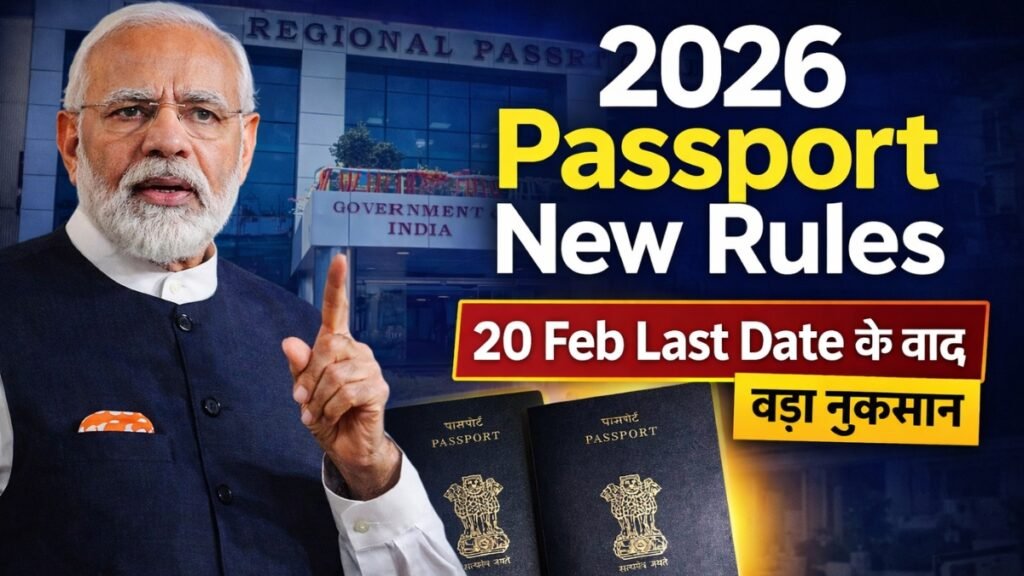 2026 Passport New Rules: पासपोर्ट से जुड़ा एक बड़ा अपडेट सामने आया है, जो 2026 में अप्लाई करने वाले लोगों के लिए बहुत जरूरी है। अगर आप नया Passport बनवाने की सोच रहे हैं या पुराने Passport में कोई काम बाकी है, तो ये खबर आपके लिए है। नए Passport Rules लागू हो चुके हैं और 20 Feb Last Date के बाद लापरवाही करने पर सीधा नुकसान हो सकता है। इसलिए समय रहते नए नियम समझ लेना बहुत जरूरी है।